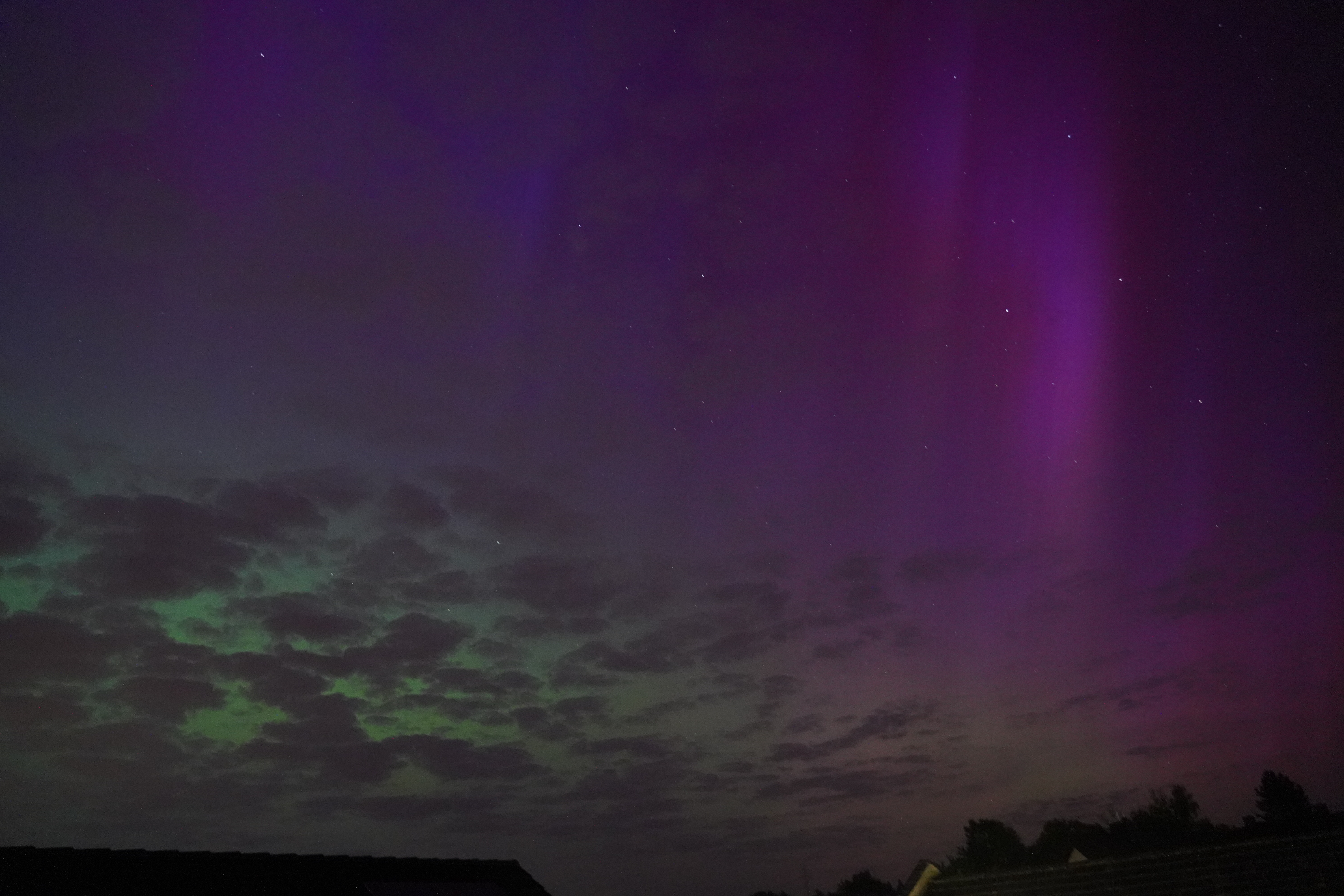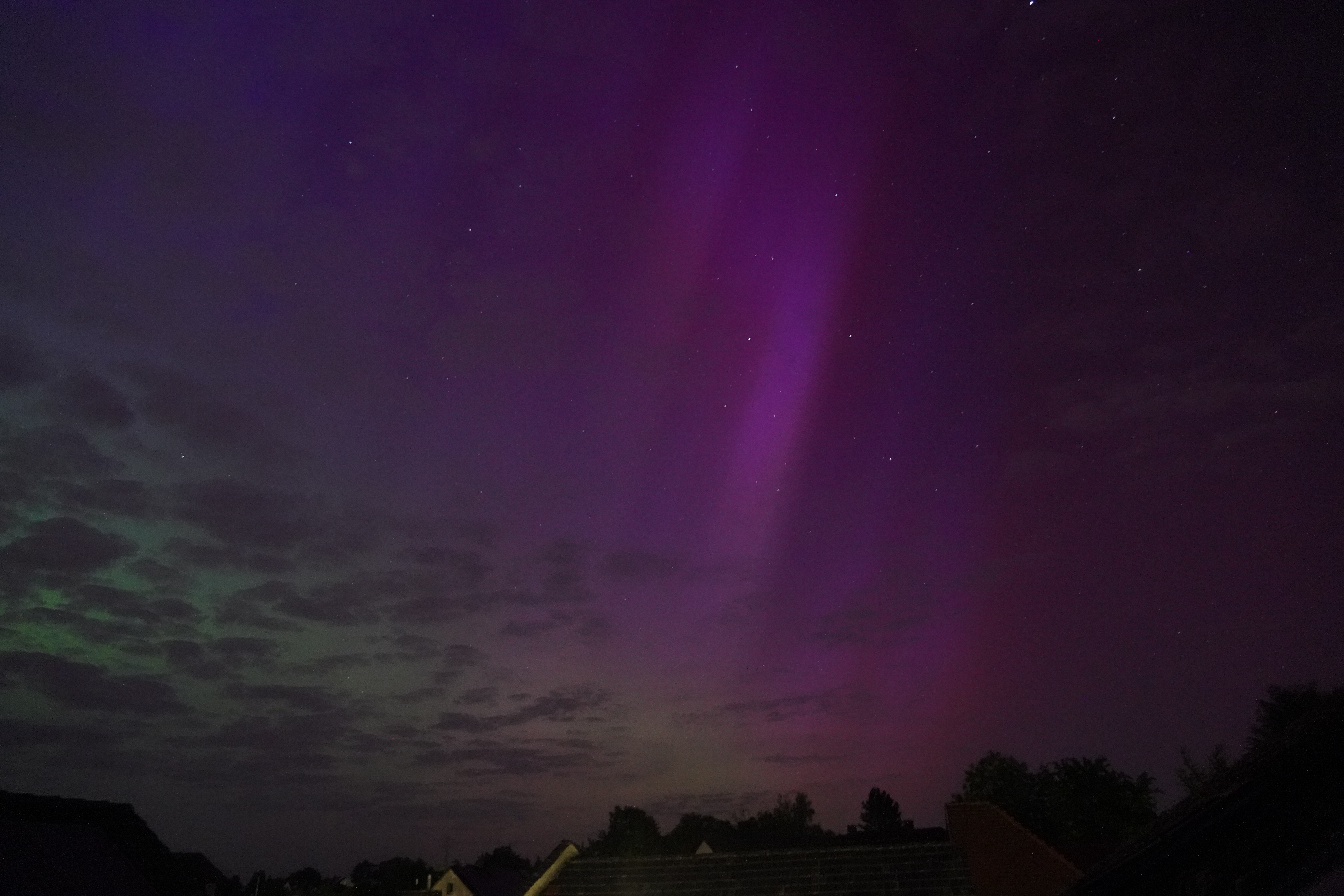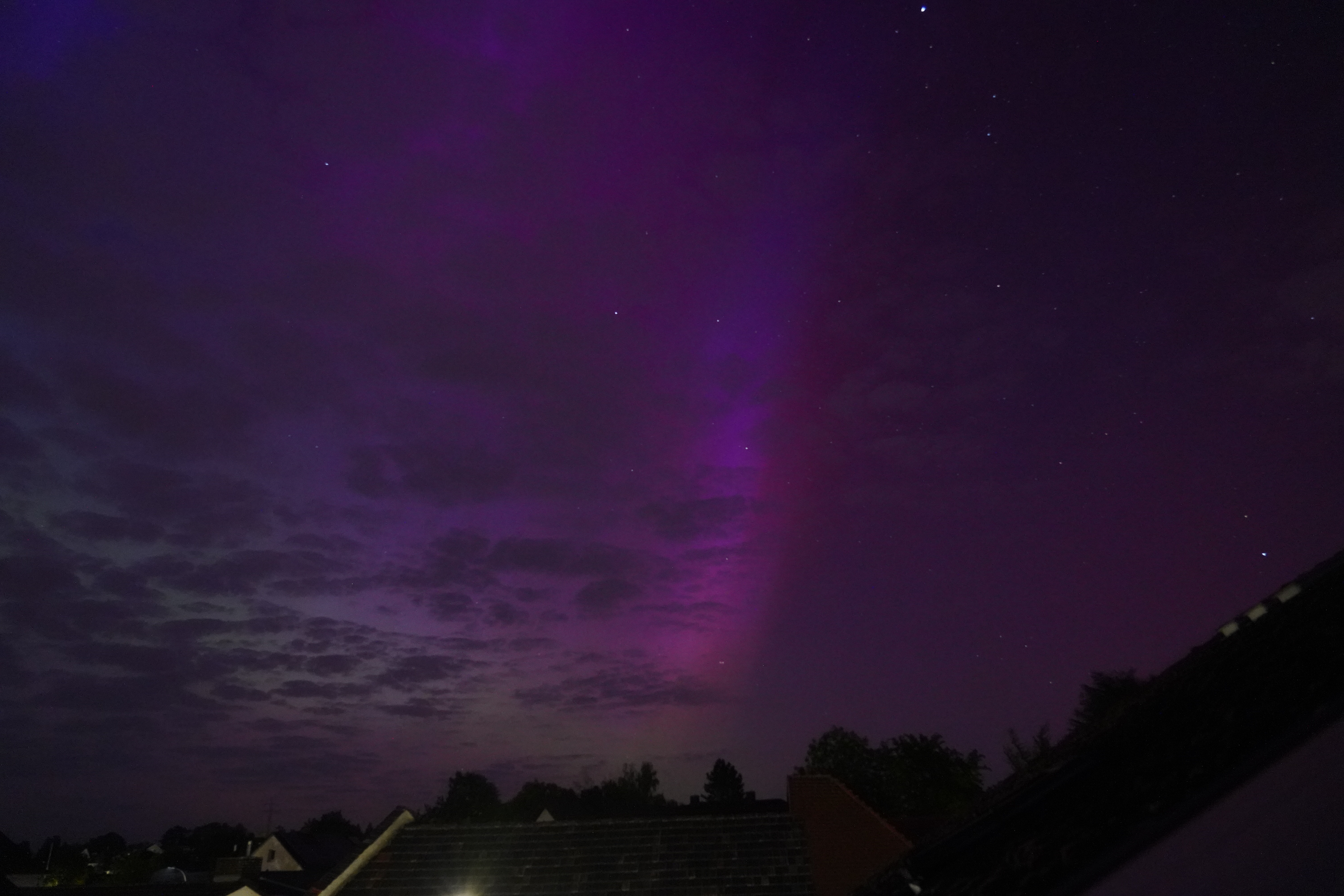 An sich würde man vermuten, dass man schon weit in den Norden fahren muss, um Polarlichter zu sehen. Das stimmt in der Regel auch, aber in diesem Jahr 2024 war die Sonnenaktivität derart hoch, dass sogar in weit südlicheren Gebieten Polarlichter zu sehen waren.