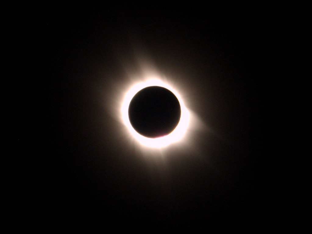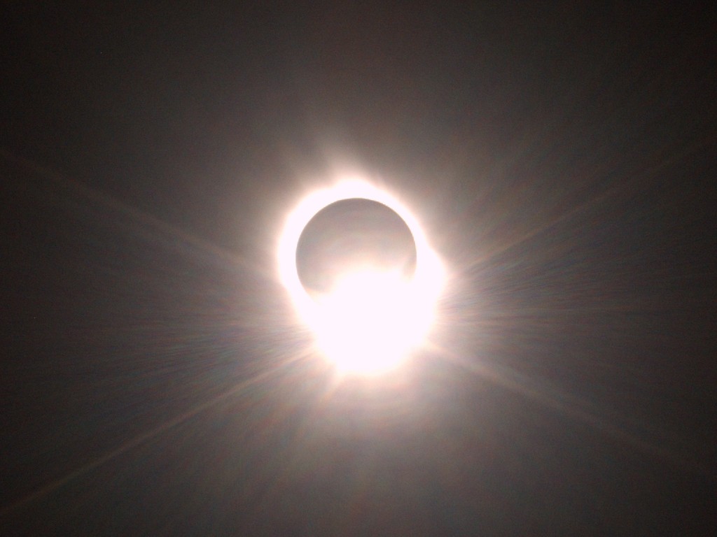 Es ist unfassbar, aber da stehe ich, eine totale Sonnenfinsternis betrachtend, und vergesse gerade all die Enttäuschung von 1999. Im ersten Moment mussten sich meine Augen nochmal adaptieren, als der letzte Rest Sonnenlicht verschwand; es war etwa so, als ob man versucht, sich in einem dunklen Raum zurechtzufinden, nachdem man das Licht ausschaltet. Ein paar Sekunden später breitete sich die Korona zur Seite aus.