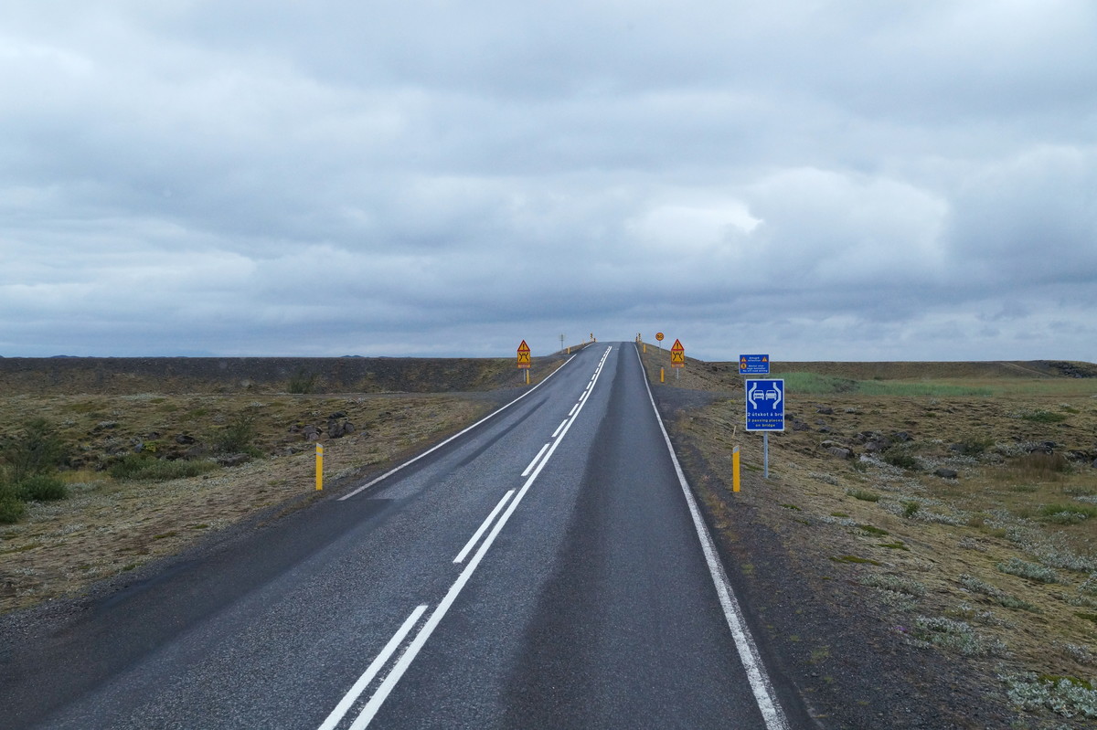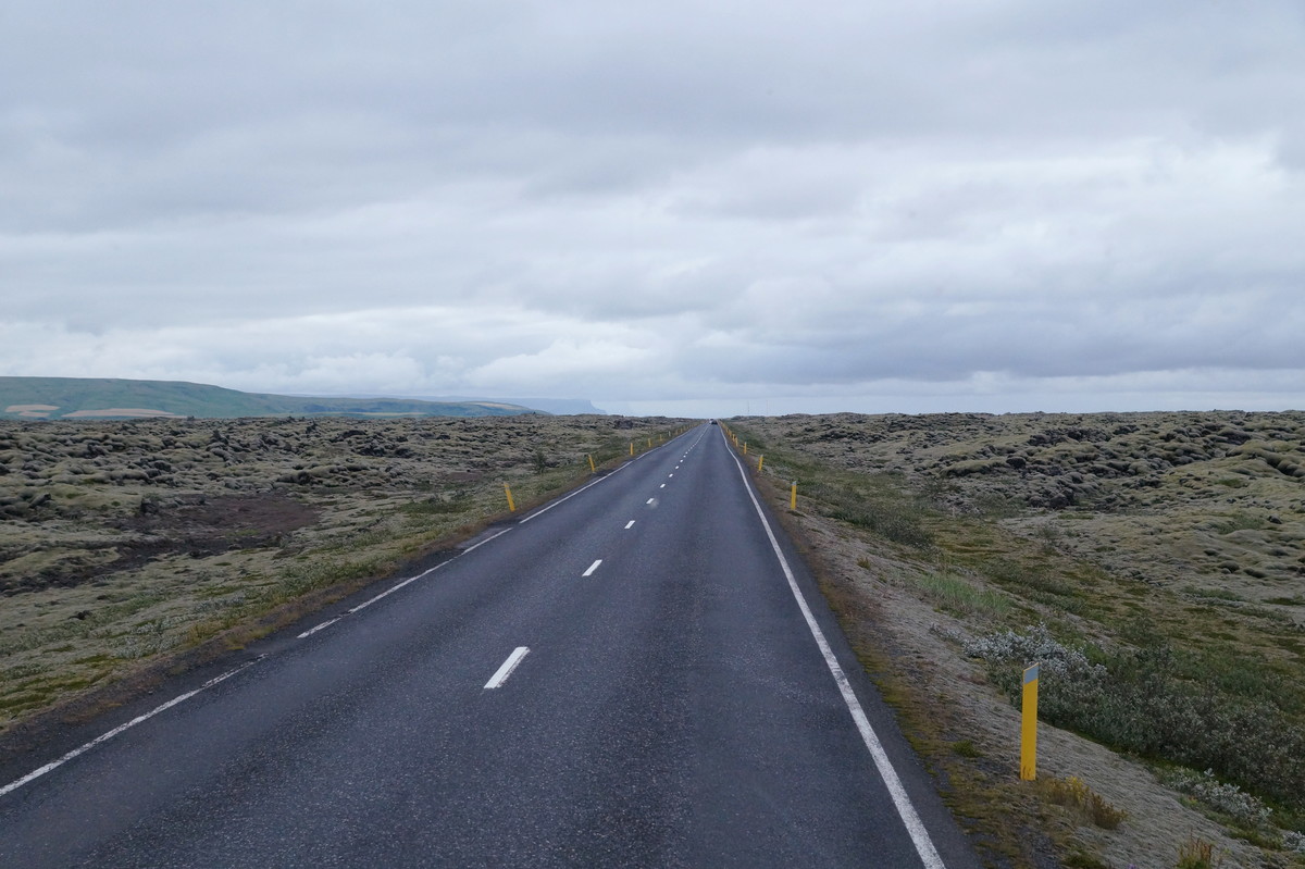 Our trip leads us along the coast, crossing far-stretched lava sand plains (looks like black rubble over kilometers). Some time later, we are standing at the Dyrhólaey ("door hole island"). There we find rugged cliffs, far sights along the coast, lots of puffins in the rock face. We drive to the other side of the lagoon to the Reynisfjall. Many basalt columns form the foot of this hill. The sand of this beach is pitch black. As the end of this day, we arrive at the Búrfell hotel in Steig, a few kilometers back the road.