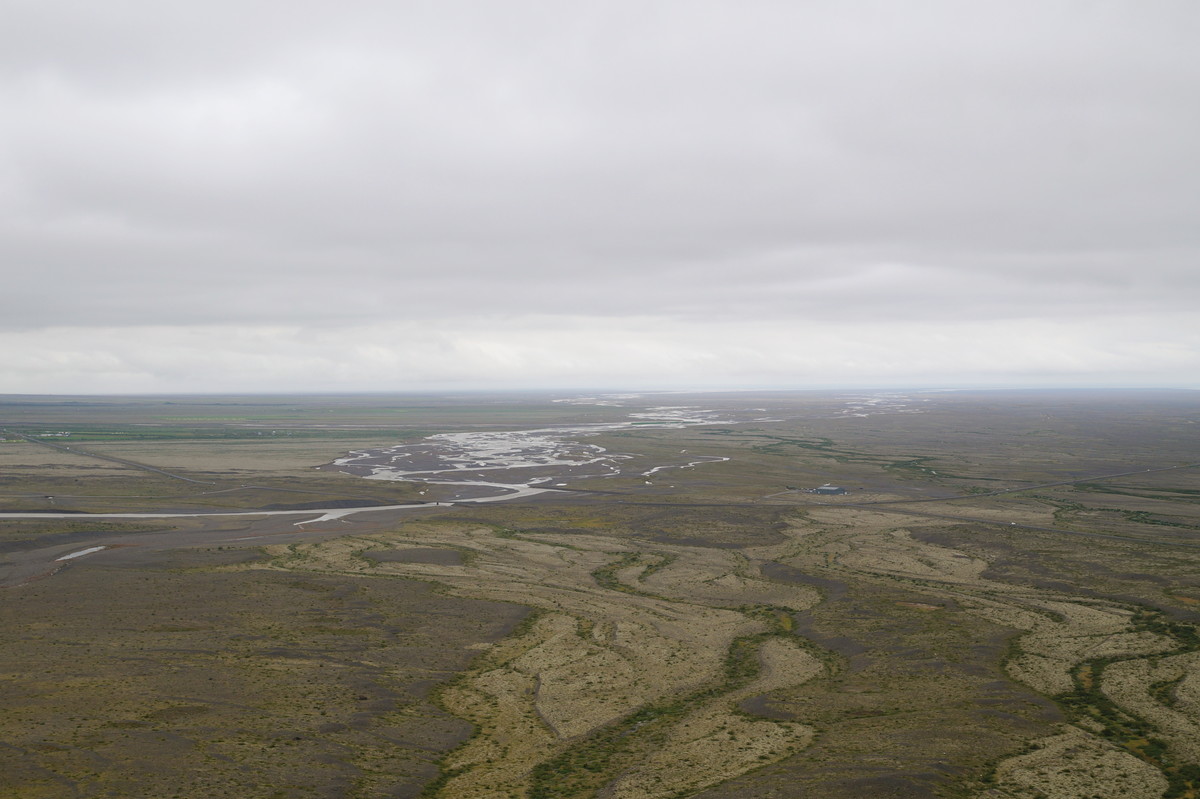 Starting from here on the next day, we cross some more sanders (lava fields) on the next morning, have a short stop-over in Kirkubæjarsklaustur, and then get to our next hiking path. But we are not heading for the Svartifoss or Hundafoss waterfalls, but instead walk up to a vista point where we have a great view of the plain and the glacierSkaftafellsjökull. It is, however, just a part of a much larger glacier, the Vatnajökull. Our hiking tour leads us for about an hour up to the ridge, where we have a lunch, and then descent again to get to the bus.