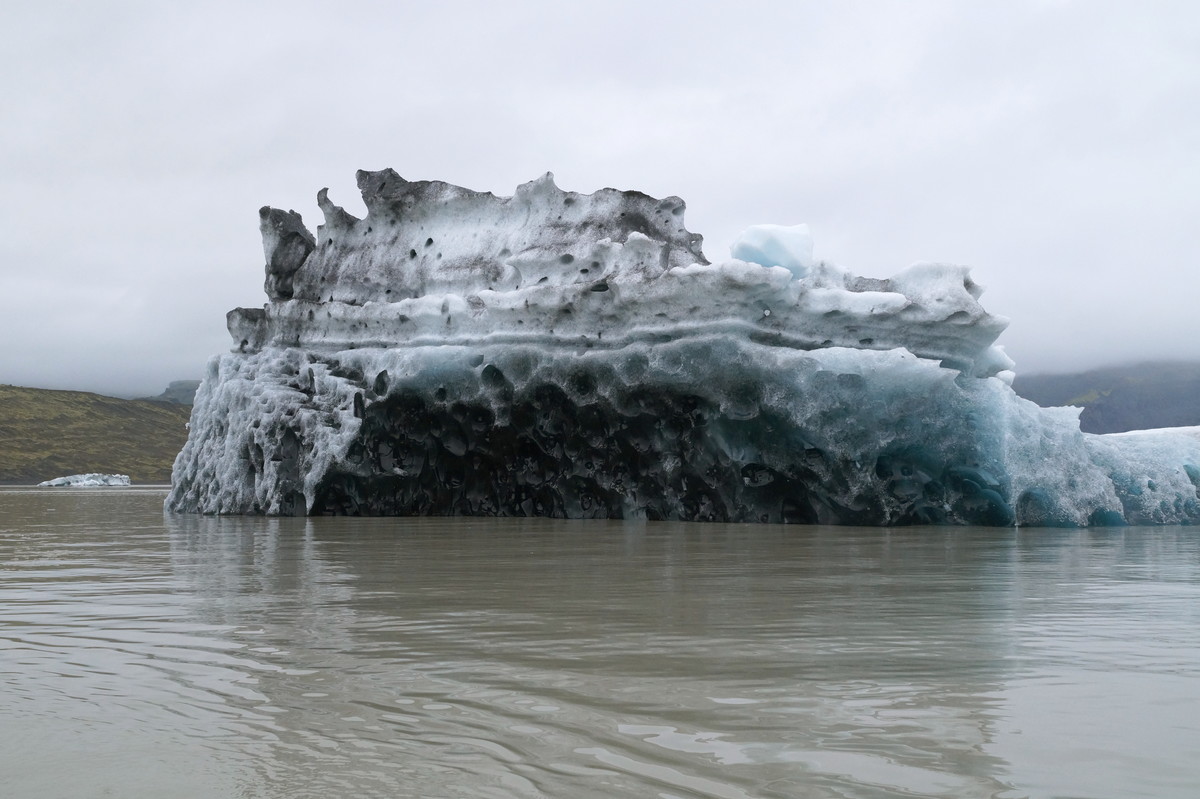 A few minutes later we arrive at the glacier lagoon Fjallsárlón. We have a ride on inflatable boats and get really close to the Fjallsjökull from which icebergs regularly break off. In fact, while we are in the middle of the lagoon, a loud bang occurs, and a piece of the glacier breaks off. Later, we walk along the banks of the Jökulsá, with lots of melting icebergs. Fun fact: The Jökulsá was blocked to make the Jökulsárlón freeze for the James Bond movie "Die another day".