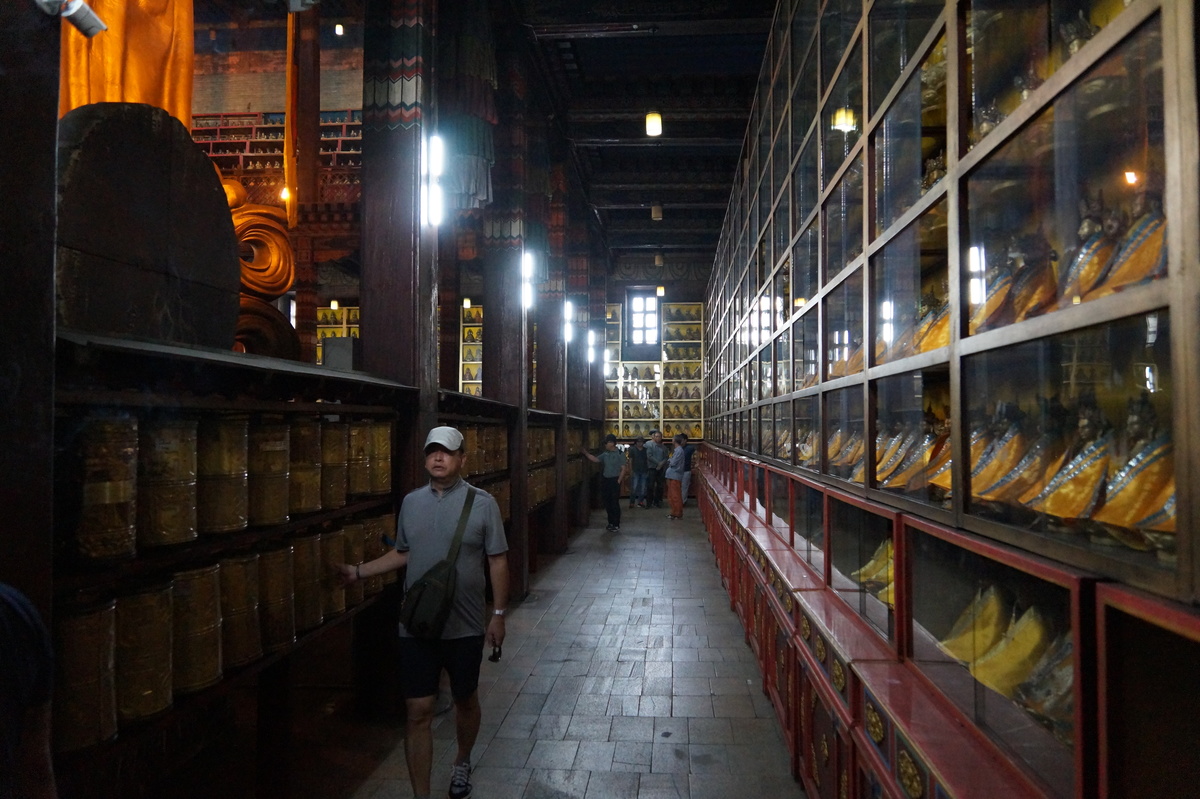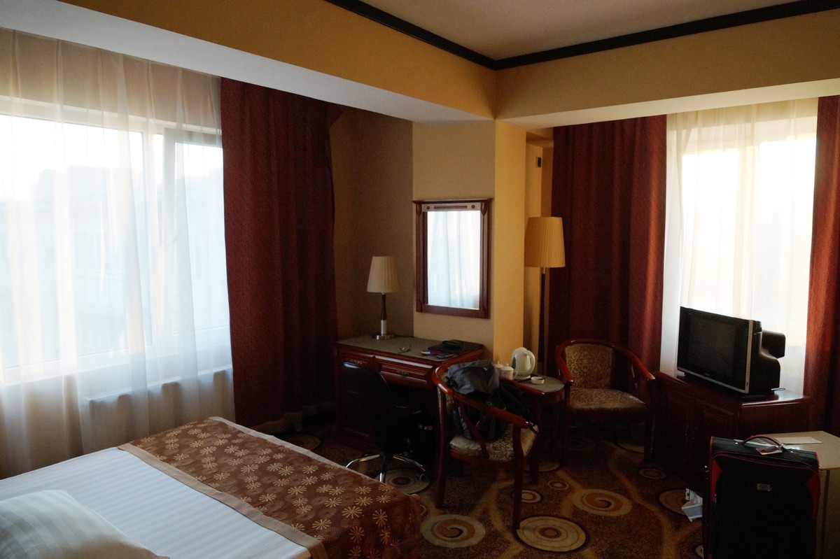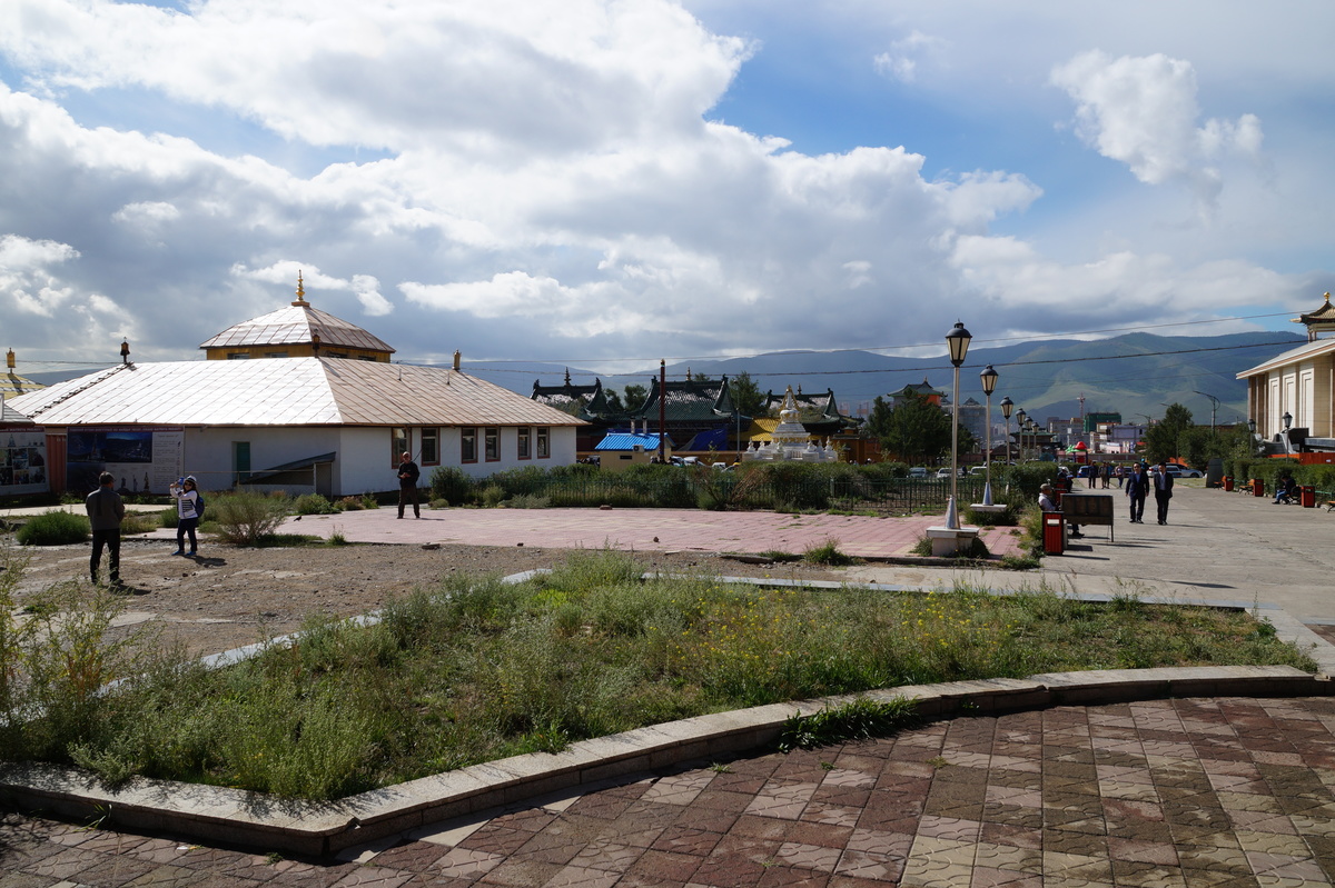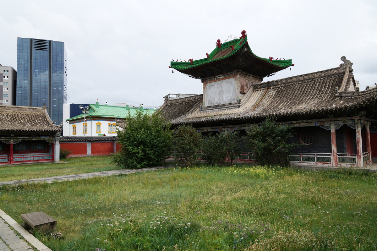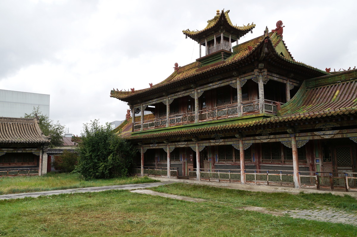 Ulaanbaatar. We have a short walk in the city on the first day, going to the Museum of Mongolian History, the Bogd Khan Palace, and to the Zaisan monument where we have a great view over the city. Back in downtown Ulaanbaatar, we visit the central Süchbaatar place, where Genghis Khan reclines majestically on his throne at the northern end. In the evening we watch a Mongolian theater performance. No photographs are allowed there, and the staff eagerly watches you and shoots at you with green laser pointers, should you dare to raise a camera or smartphone.